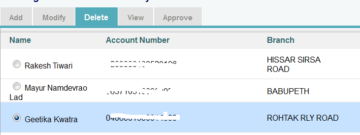 how to delete inter bank beneficiary account in sbi..