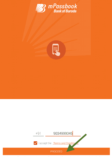 Step 3: You have to enter the ten-digit mobile number registered at the bank and linked to the account and click the proceed button.