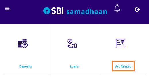 Open the SBI Samadhan App and register your bank account. Click on ‘A/C Related‘ tab. Choose the loan account number and select date range, click the the the ‘A/C Statement‘ button.