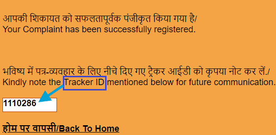 Step 4: Once done, a ‘Unique Tracker Id‘ will be allotted to you which should be kept safely for other future interactions with the bank. You can check the status of your complaint online by using this tracker id in the future.