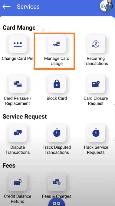 Step 3. Next, click on the “Manage Card Usage” option on the next screen under the “Card Management” option.